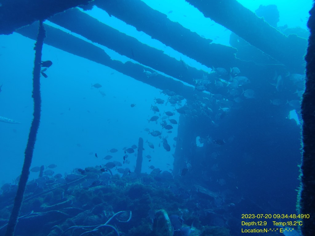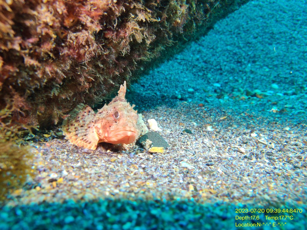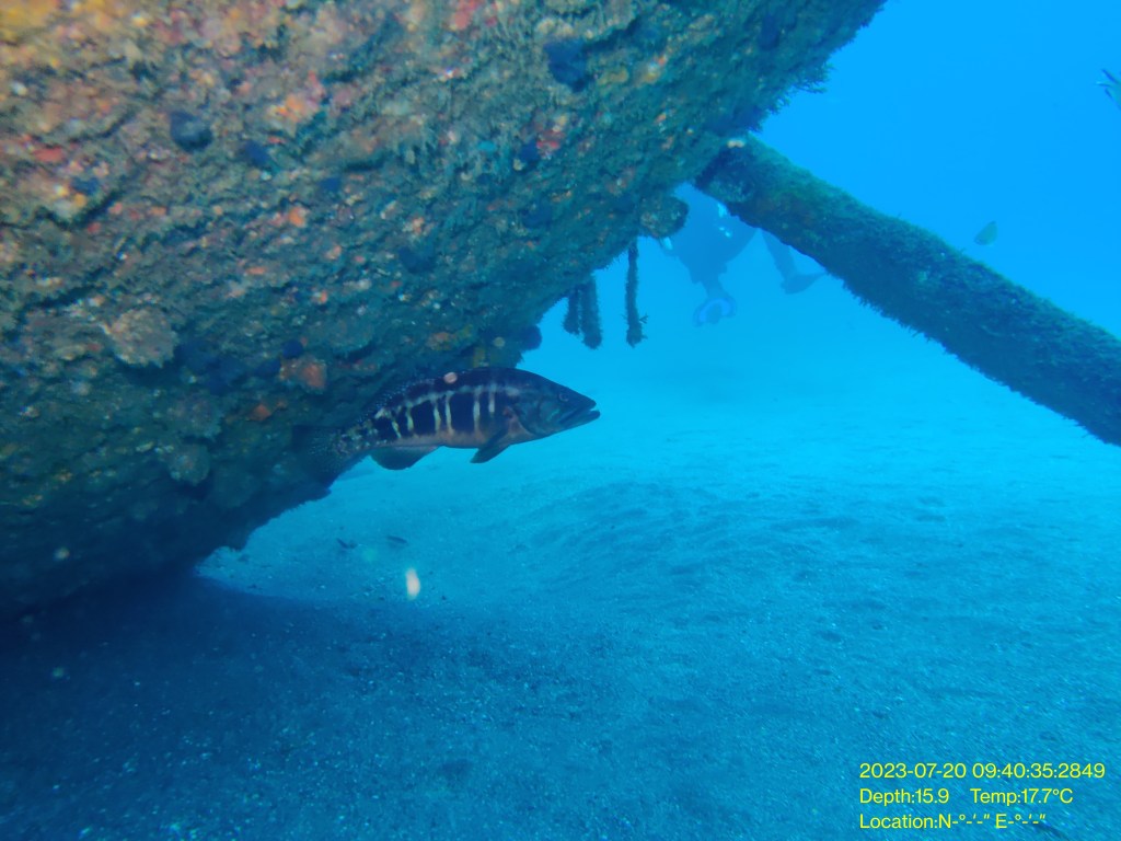 And on these two last pictures you can understand how a scorpion fish and a blacktail comber use the wreck’s structures as shelters.