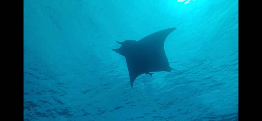 We know that all around this seamount, it is approximately 200 meters deep and that there are only adult rays present. It is most likely that the food transported by the currents is pushed to the surface by the shape of the seamount and that mobulas then just gather around it to eat it before crossing the ocean.